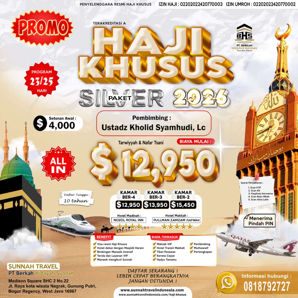 Jamaah melakukan pembayaran DP atau pelunasan sesuai ketentuan paket. Bukti transfer dikirim ke admin.